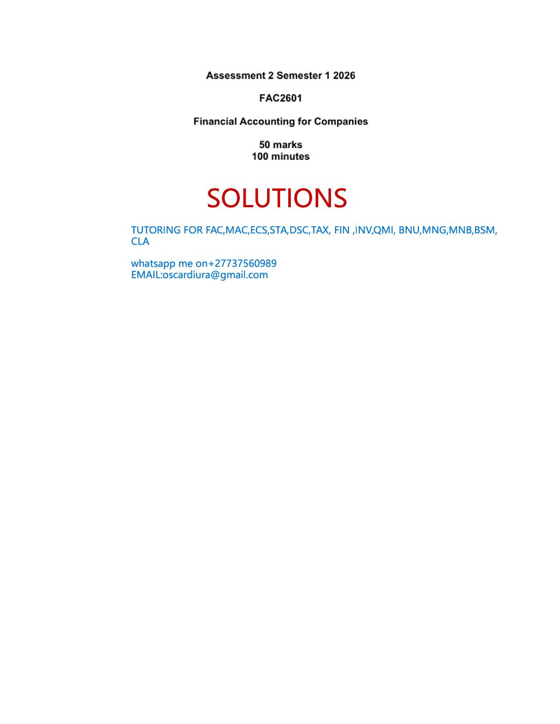 FAC2601 ASSESSMENT 2 SEM 1 OF 2026 EXPECTED SOLUTIONS